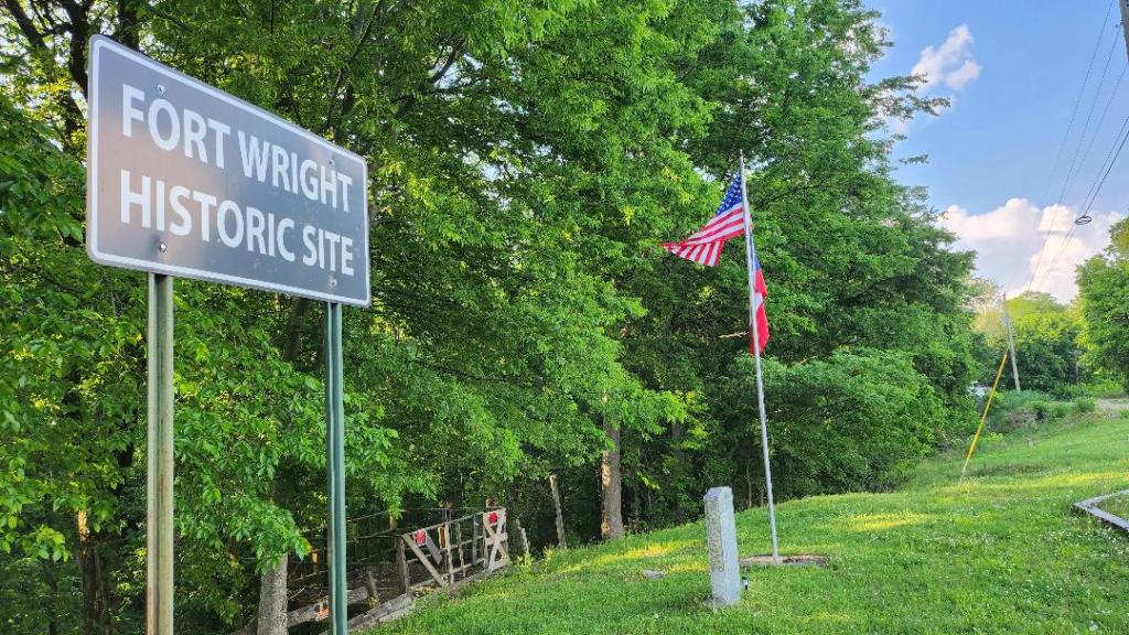 The marker below is up the hill from the above photo, where Fort Wright was once located. There are homes on both sides of the marker and across the street. The area itself is now just a patch of grass that looks to be on private property.